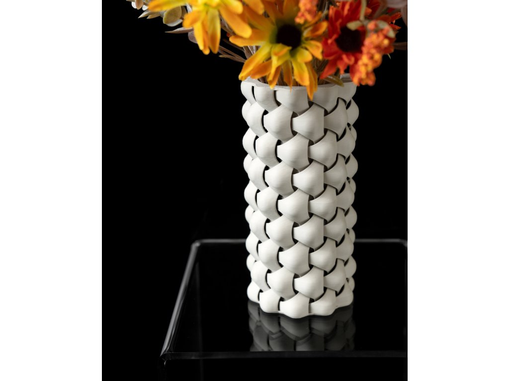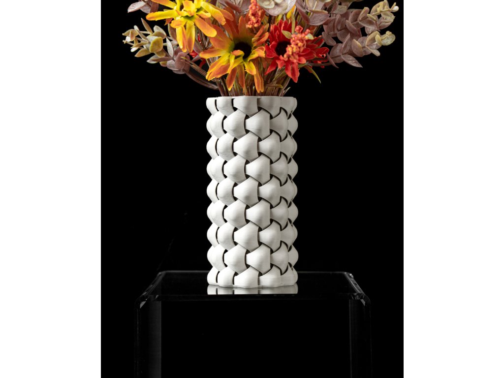 Hledáte stylovou a moderní vázu, která dodá vašemu interiéru jedinečný vzhled? Tri-Weave je mistrovské spojení geometrického designu a 3D tisku. Její proplétaný vzor vytváří fascinující hru světla a stínů, což z ní dělá perfektní dekorativní prvek pro váš domov. Vyrobená z ekologického PLA, je lehká, pevná a šetrná k životnímu prostředí. Ideální pro řezané květiny, sušené dekorace i jako samostatný designový doplněk.