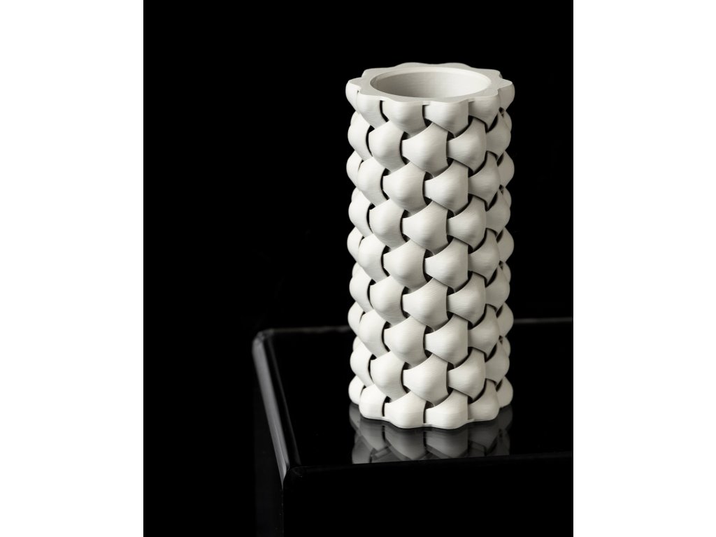 Tri-Weave váza zaujme svým unikátním designem, který kombinuje moderní geometrické tvary s nádechem přírodního umění. Tato 3D tištěná váza je ideální pro moderní domovy, které touží po neotřelém vzhledu a jedinečném kousku nábytku. Kombinace pletených linií dodává váze elegantní a zároveň vzdušný vzhled.